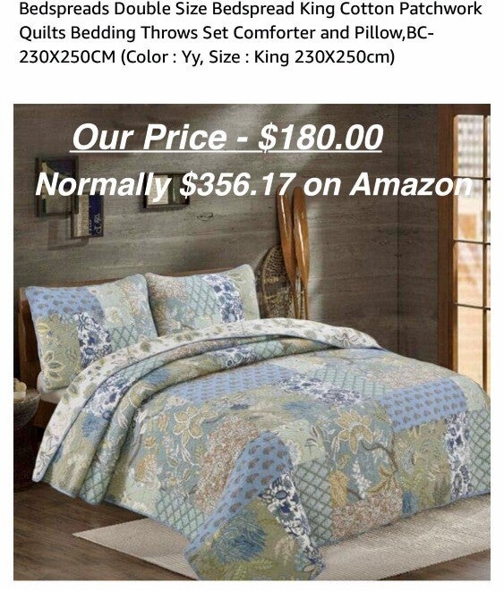 King Size Cotton Patchwork Quilt Bedding Set - Comforter and Pillow